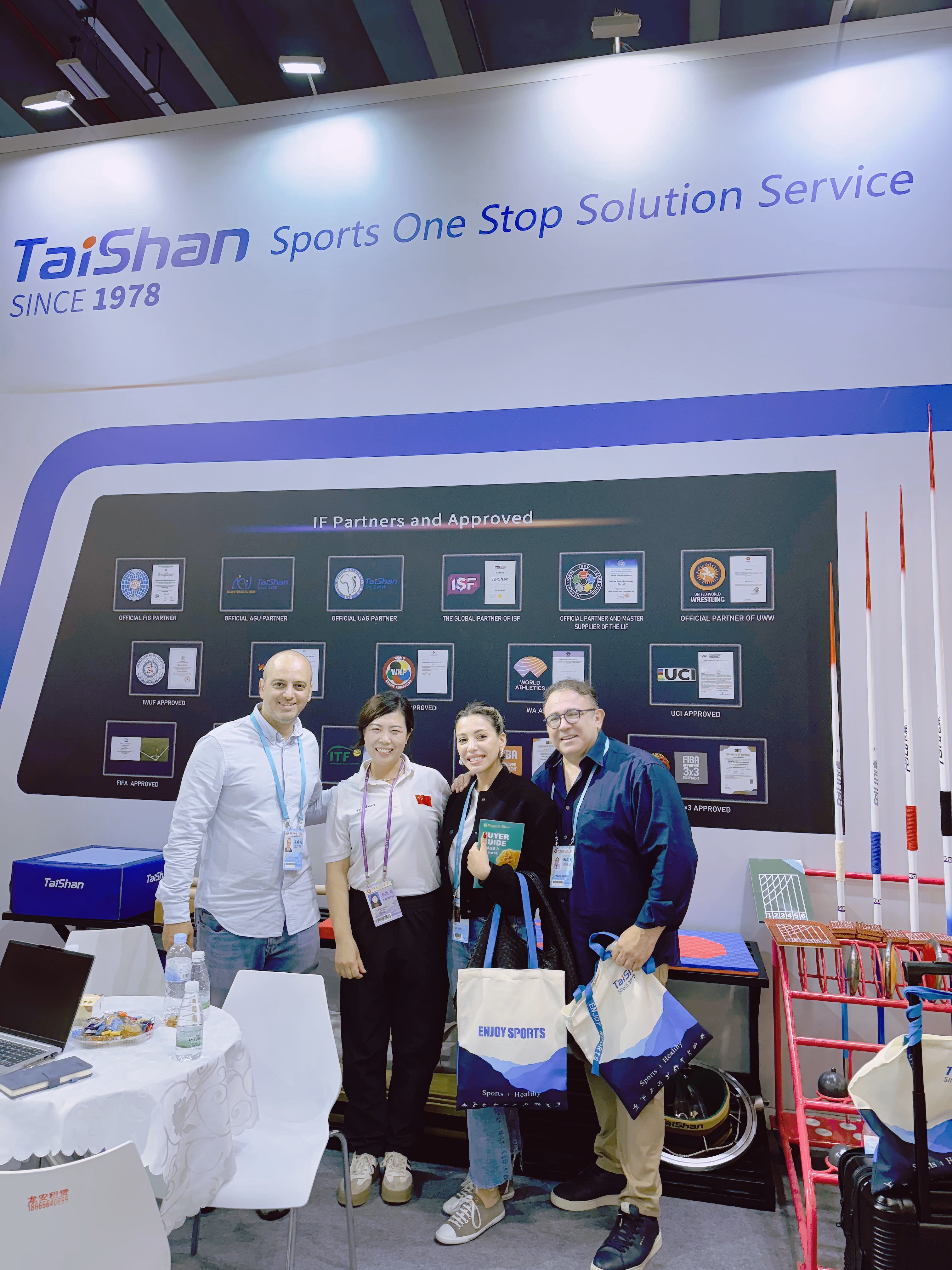 江南体育提供的竞技体育器材产品种类齐全、质感细腻、质量优良,碳纤维跳马、摔跤垫、新型武术场地、空手道垫、跆拳道拼接垫、拳击护头(手套)、柔道服等20余种体育器材产品,吸引了众多观展商的目光,收到了良好的参展效果。