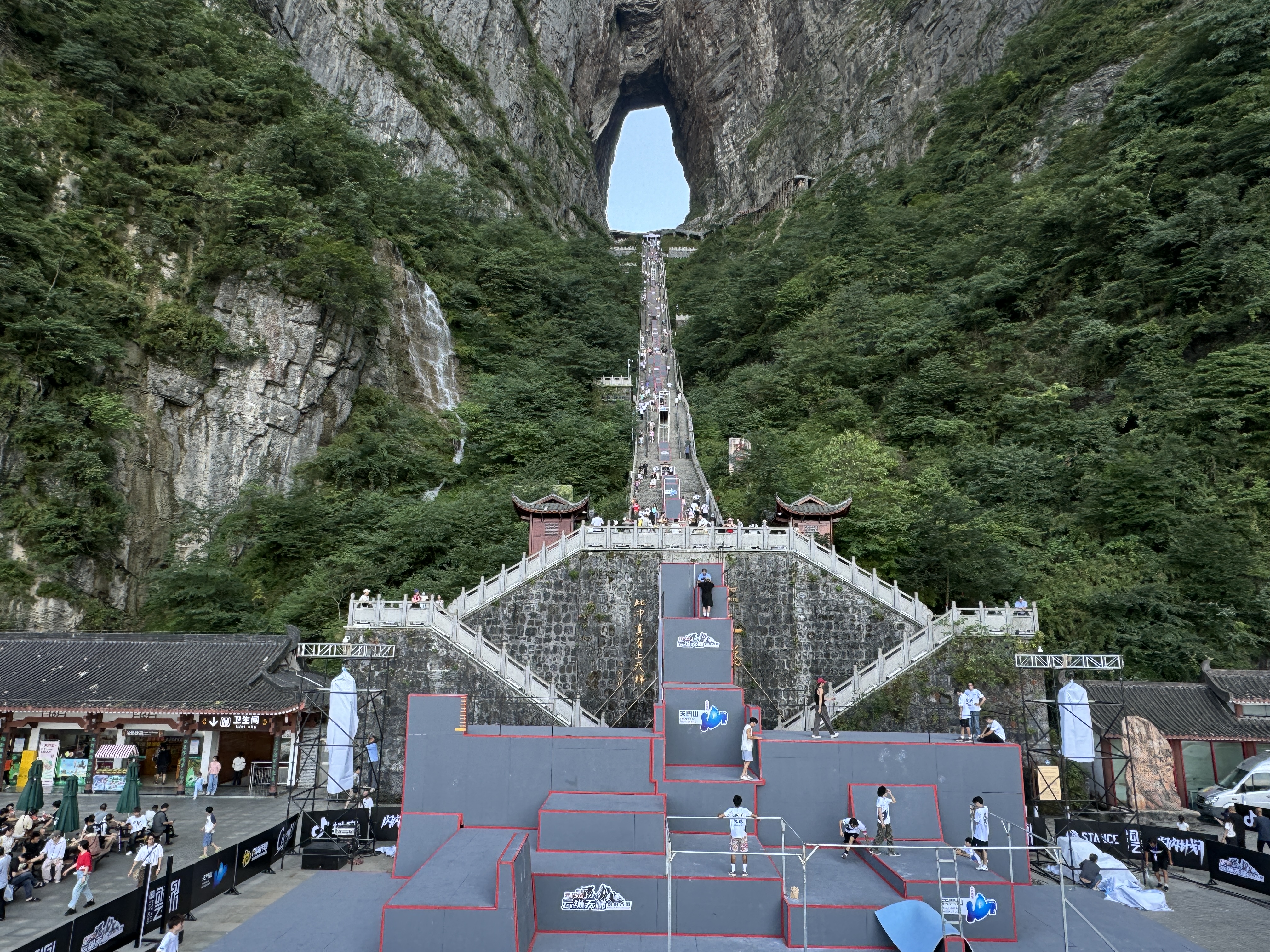 【概要描述】8月24日,“2024第三届天门山云纵天梯跑酷大赛"在张家界天门山景区拉开序幕,来自国内外的70名优秀运动员,经过层层严格筛选齐聚天门山。  作为国内“赛道最长、技术难度最大、场地环境最为独特”的跑酷大赛,是一场速度与技巧、勇气与毅力的巅峰对决。  最值得关注的是,江南体育作为此次跑酷大赛器材供应商与服务商,见证并助力赛事精彩举办。今年以来,江南体育对跑酷器材不断进行升级改造,使其颜色更靓丽、外观