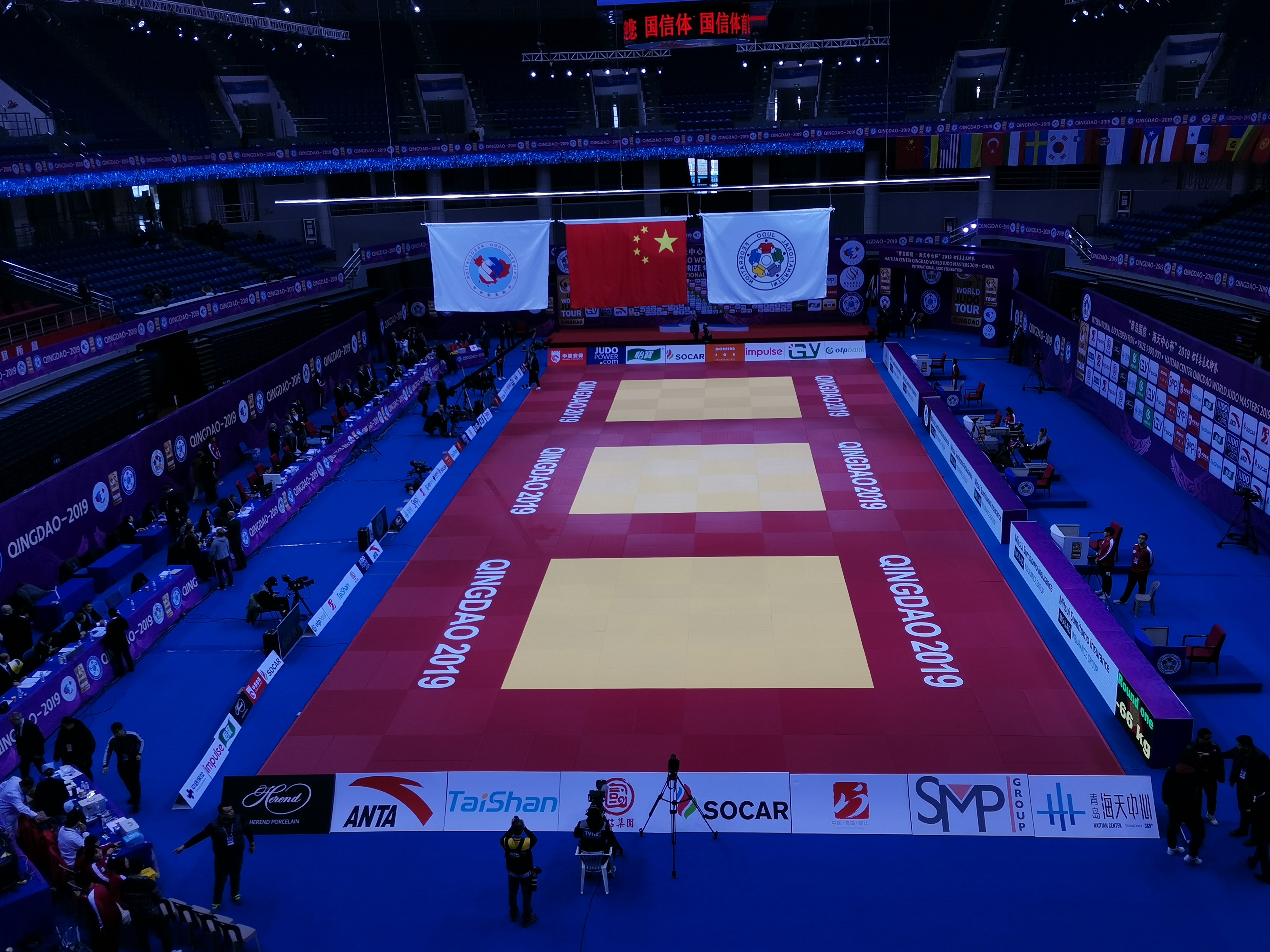 12月12日至14日,由国际柔道联合会、中国柔道协会、山东省体育局主办的2019年世界柔道大师赛在青岛体育中心拉开战幕。本届赛事作为国际A类赛事和2020年东京奥运会积分赛,吸引了包括世界排名前16位的运动员在内的465名运动员报名参赛。江南体育作为本届大赛的指定器材供应商为来自世界各国的运动员提供品质器材支持与优秀服务保障。