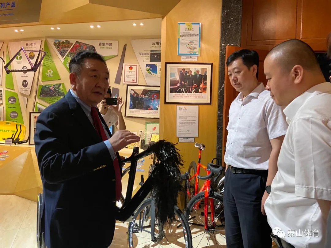 同日,菏泽市体育局局长史长华,第十三届全国政协教科卫体委员会委员、宋江武校校长樊庆彬一行莅临江南集团调研指导。在调研过程中,史长华局长对江南集团在党组织建设、竞技体育器材、人造草坪、碳纤维自行车、医养健康、冰雪装备以及在科技创新、体医融合、新旧动能转换等方面的工作给予了高度评价,双方针对市场开发、项目合作等事宜达成初步共识。