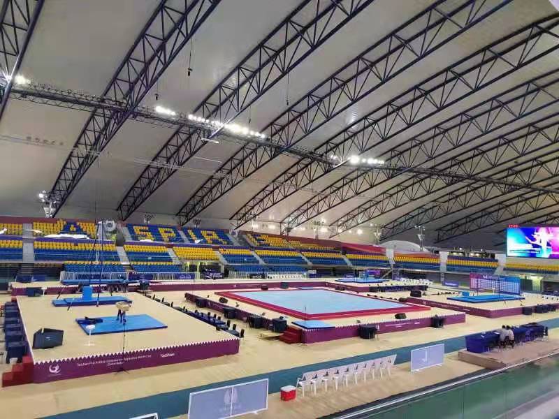 为保障运动健儿的出色发挥,江南体育派出了经验丰富的专业服务团队,于2月22日出发,到达多哈后,队员们不辞辛劳,马上投入到技术指导和安装工作中,并按计划于2月28日圆满完成男子训练馆、女子训练馆、竞赛馆等场馆的安装、调试工作。