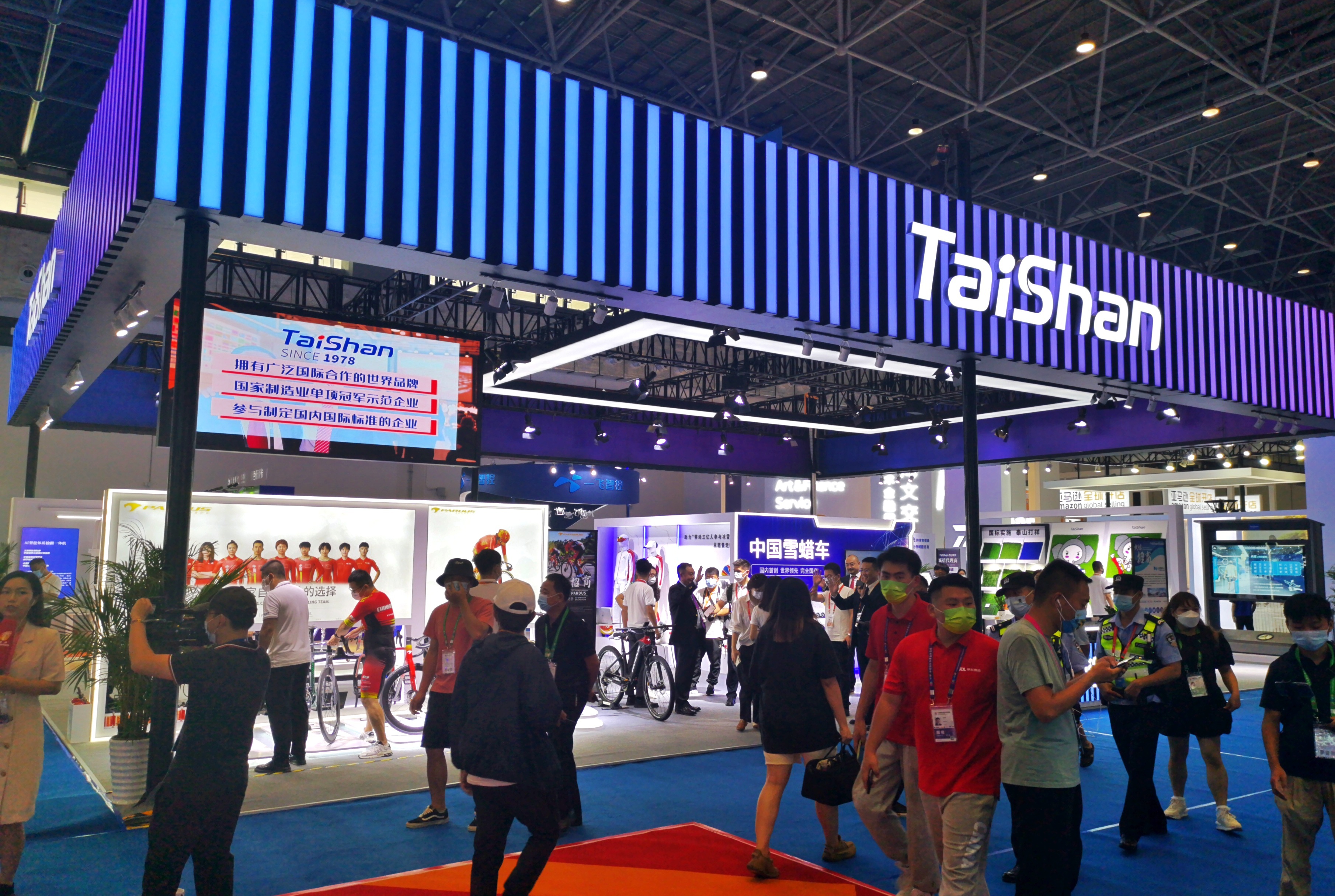 江南体育将展示高端碳纤维自行车、全球首创碳纤维体操器材、冰雪运动精品装备、智能居家健身装备、新材料人造草坪、中国雪蜡车文创产品等极具体验性的高端体育器材精品,体育+娱乐双重属性,推动体育精品消费。多年来,江南体育出色服务6届奥运会在内的2000多次国内外大型赛事,成为体育产业的传奇!作为“双奥企业”,江南体育以冬奥盛会为新的起点,立足科技创新,让冬奥成果更好为全民共享,丰富更多人的日常体育生活。