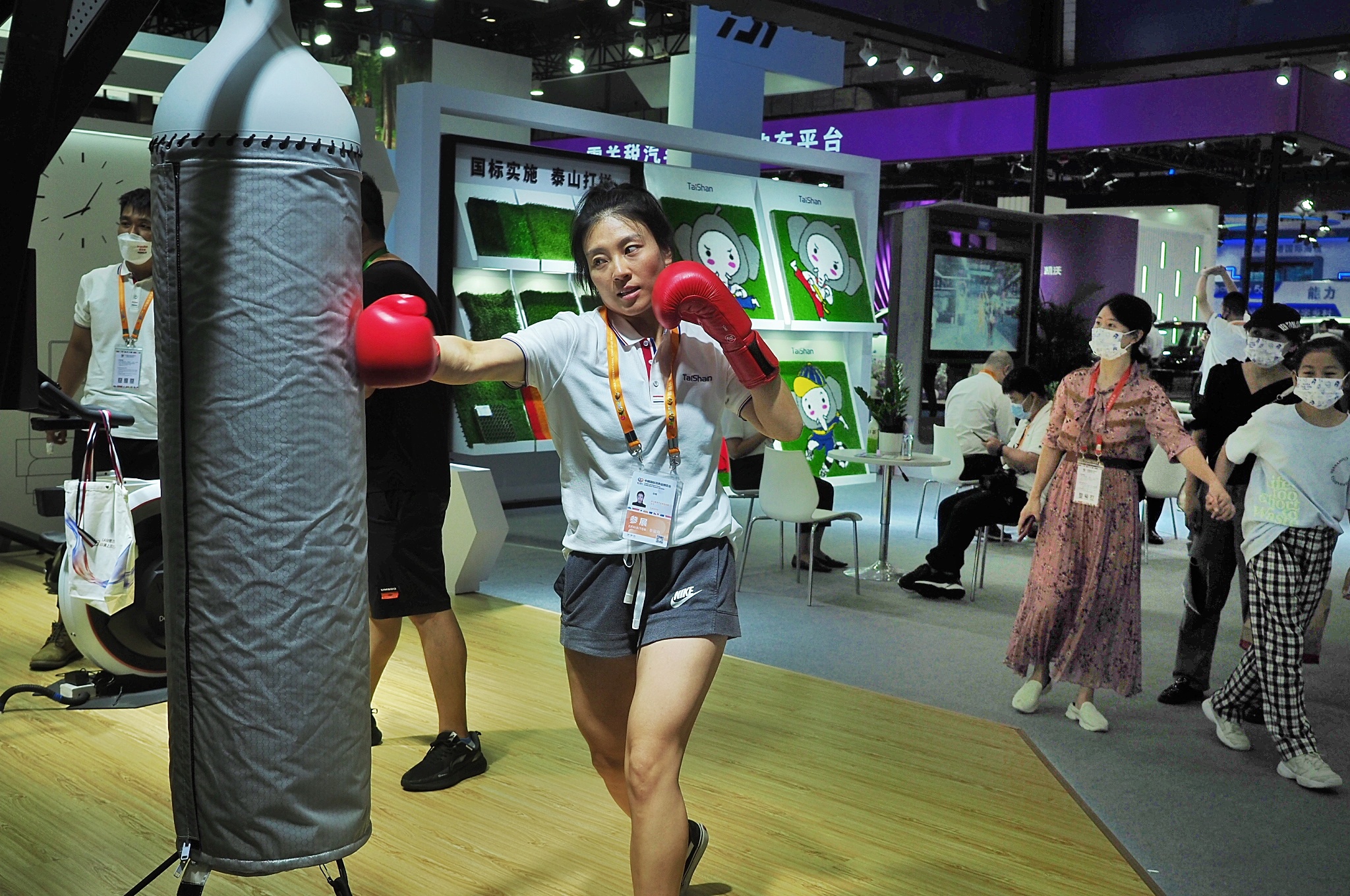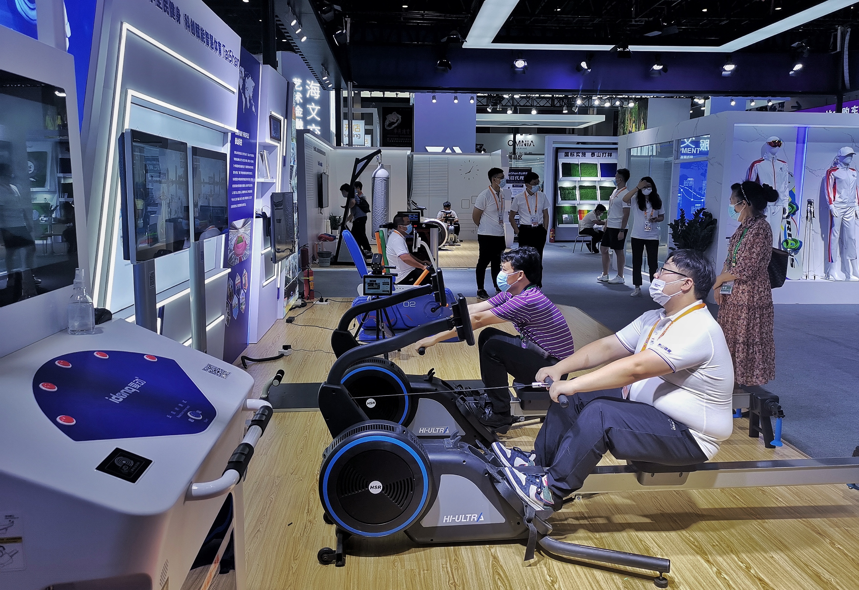 为推动“全民健身”,江南体育按照“碳达峰、碳中和”的要求,研发了可实现多台联网竞技的居家健身实景单车、划船滑雪综合训练机,智能体育考核一体机、智能体测一体机、防疫消杀设备、智能AI武术大屏、智能交互沙袋等智慧体育精品。