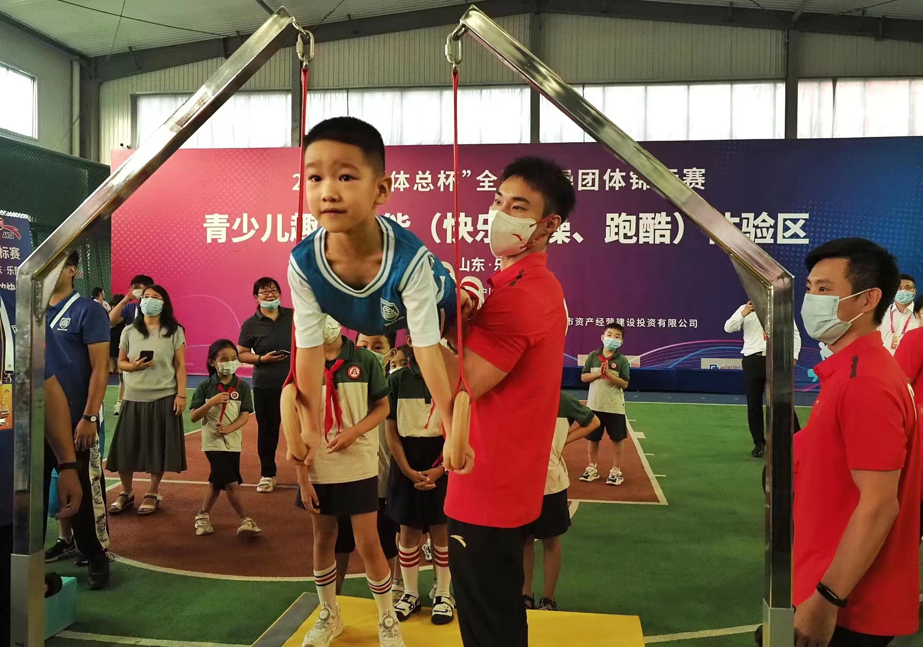 据了解,现场的青少儿跑酷和快乐体操等专门器材,均由江南体育自主研发,青少儿器材的主要标准、工艺流程、产品质量均严格按照有关标准,并获得专项认证,专业安全的儿童体能训练器材将成为大众广泛参与体操运动的有益补充。江南体育借助本次赛事举办,充分展示青能量、称小象等品牌力量,真正做到体操从娃娃抓起,推动体教深度融合,促进体操运动进校园、进社区、进家庭!
