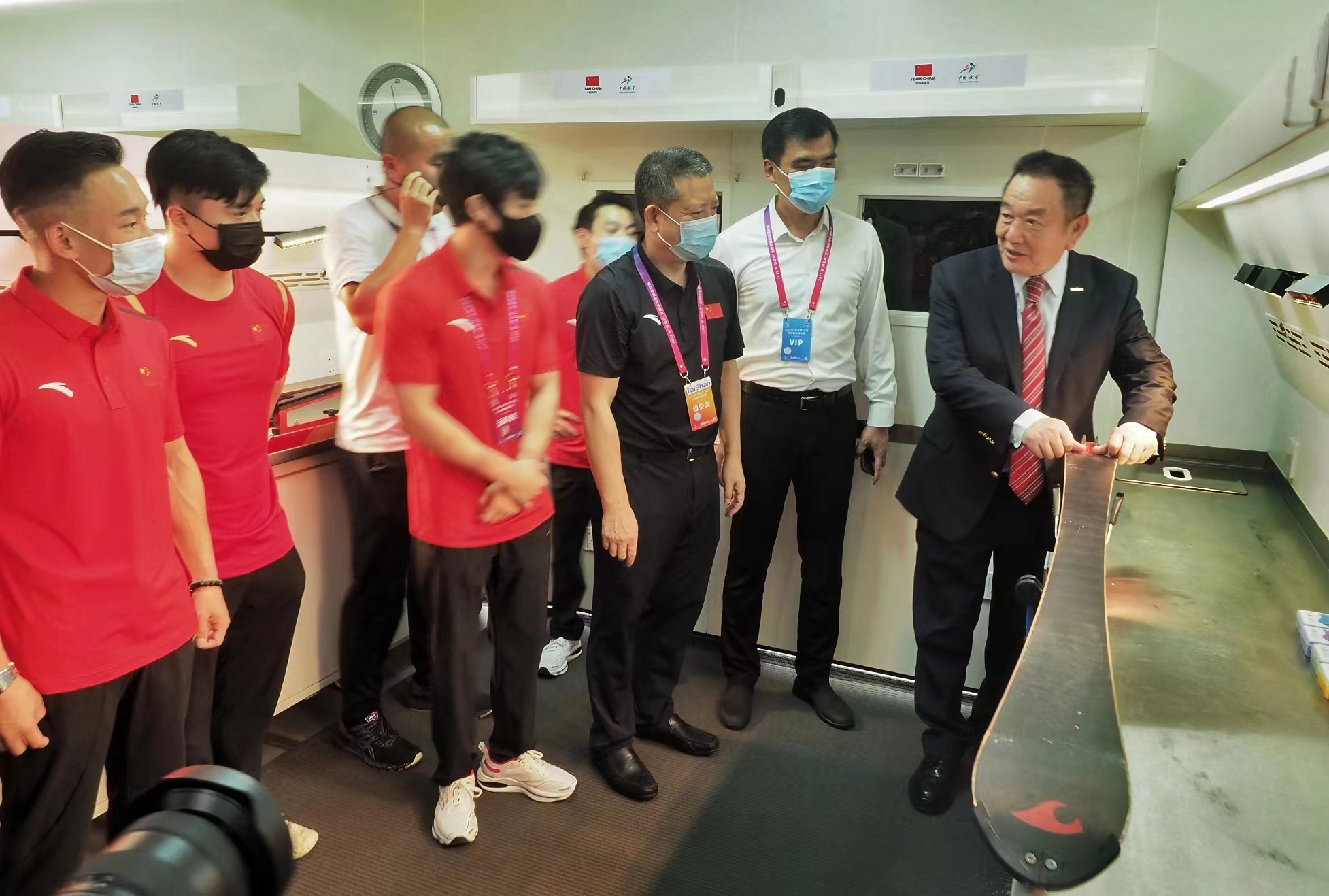 国家体育总局体操运动管理中心主任缪仲一表示,感谢乐陵市委市政府的大力支持,感谢这么多年来江南体育为中国体操做出的贡献,尤其是东京奥运会上给过我们非常大的帮助,我们取得的金牌是在江南体育器材上取得的金牌。遇到困难时江南体育从来不计代价,只为了保障我们体操队!江南体育产业集团有限公司董事会主席卞志良更是亲自为大家演示了打蜡过程,他讲到,下一步我们将运用自主研发的最新最好的科技产品,为体操健儿们也提供一辆安全舒适的保障车辆。